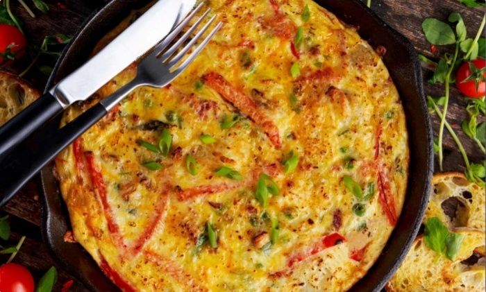 9- Battez les œufs avec le piment d'Espelette, le sel et le poivre dans un bol.